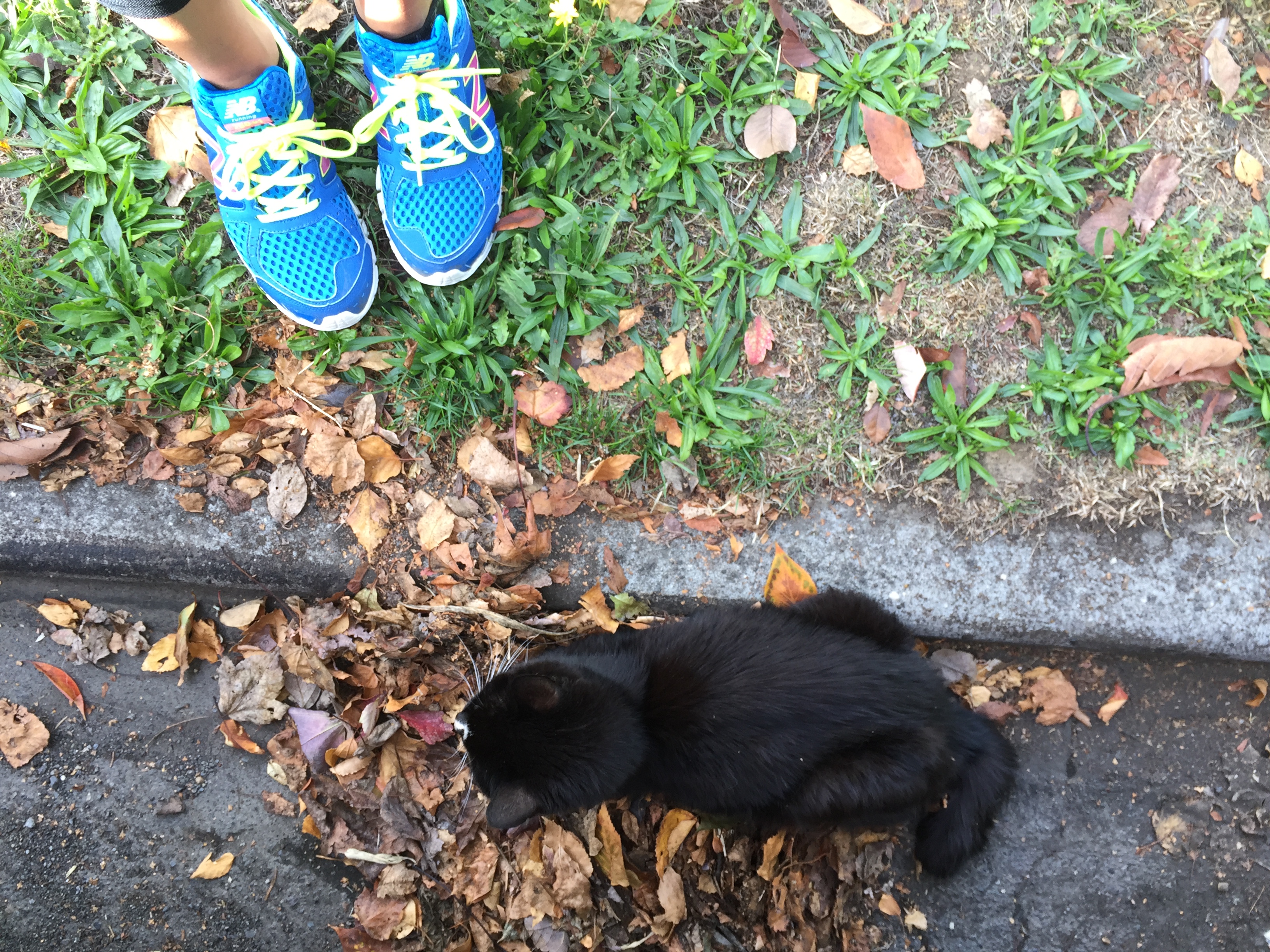 The cat was later found by our car door, sitting in leaves (iPhone)