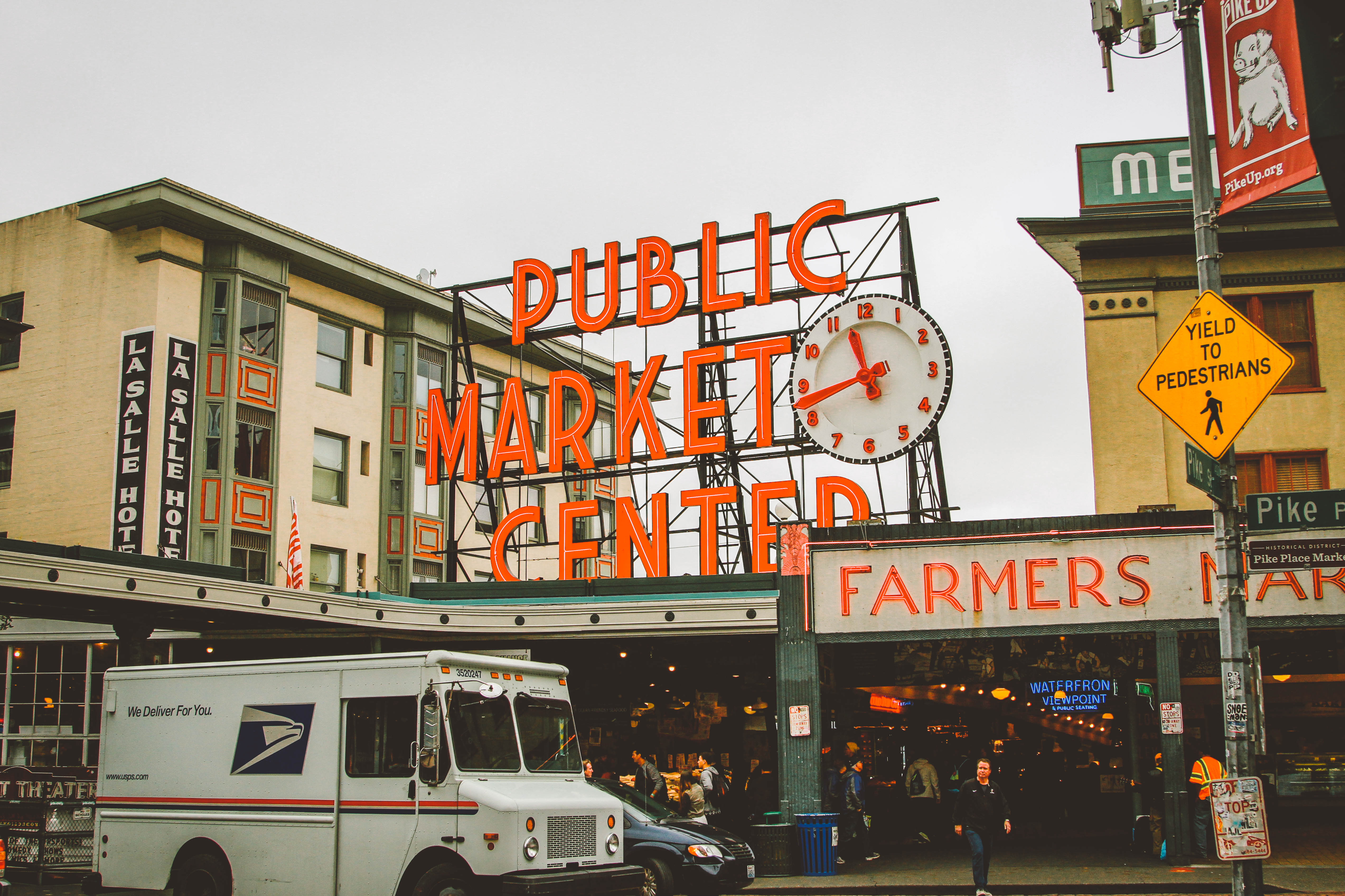 We planned this trip to Portland last year when our friends Derek and Teala got engaged. They live in Portland and we even stayed with them on our visit last year. Brendan and I were so excited to get back! But first, we decided to explore Seattle. Both of us had never been and knew it was only a three hour drive to Portland from there. We arrived in Seattle and walked around (and up and down) exploring this (confusing*) city: